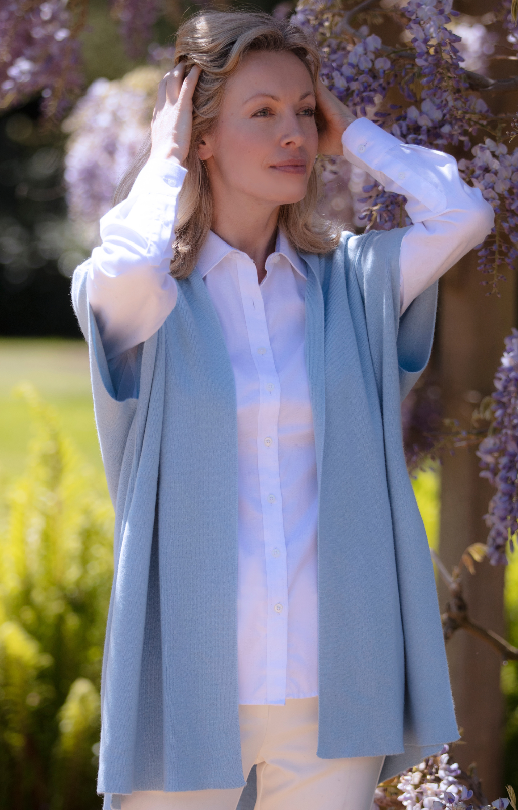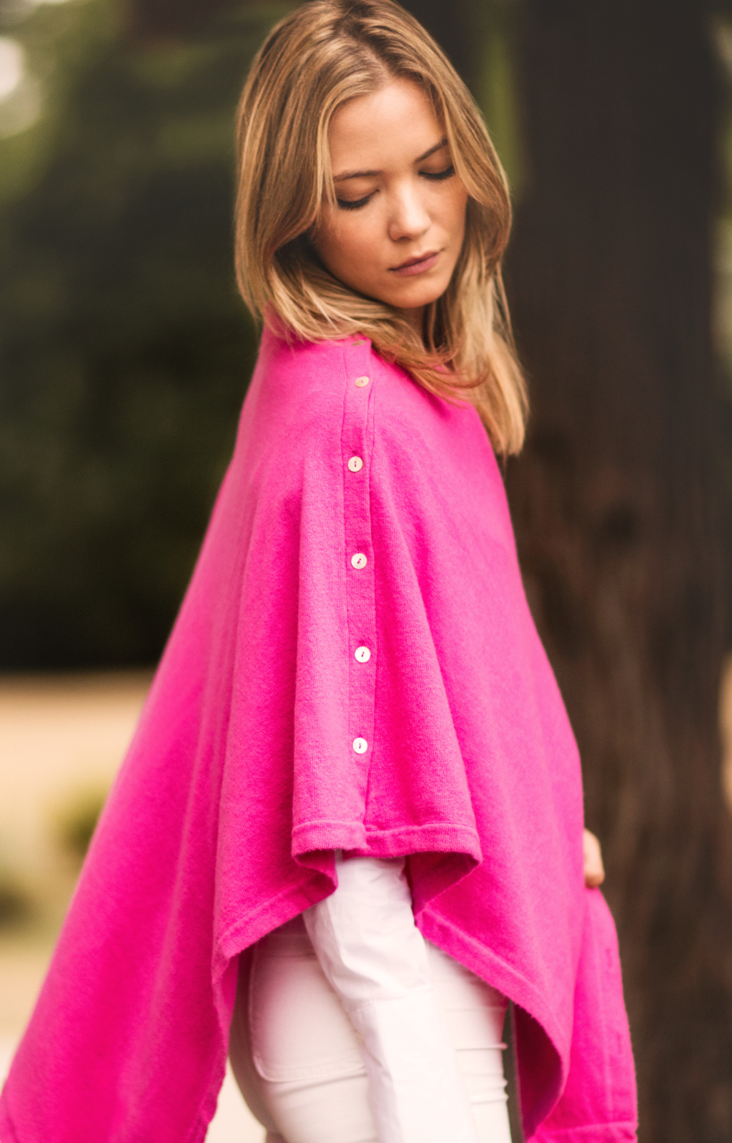 This Cashmere Button Poncho is such a useful and versatile top and the colour choice is exceptional. I have ordered two, and will probably buy another! I love the design, quality and pretty pearl buttons.